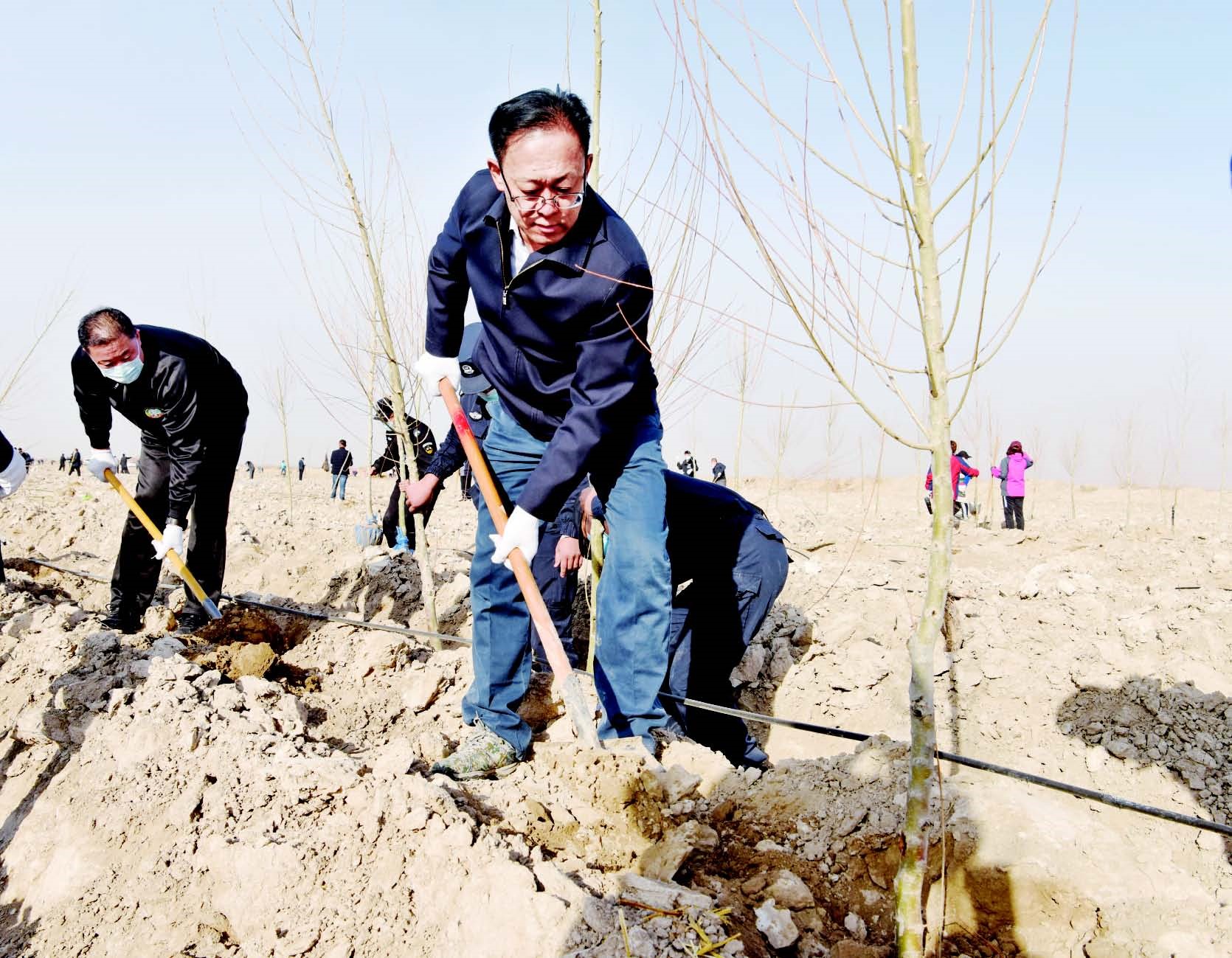 9日上午,州党委书记李刚,州党委副书记、州长图格杰加甫等来到库尔勒上库高新区石化园生态防护林工程植树点,参加2020年秋季全民义务植树活动,以实际行动号召全州广大干部群众积极投身到植树造林活动中来,迅速掀起秋季植树造林热潮,努力建设天蓝地绿水清的美丽巴州。