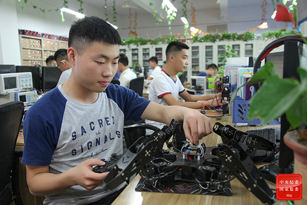 “今天的艰苦磨砺,是为了明天的青春腾飞。”同学们怀揣着实现祖国富强的远大梦想,在实践中聚能,立志为中国梦贡献青春韶华。图为重庆市机电大学学生在EECT实验室进行设备实操。(重庆市璧山区纪委监委供 陈姝颖 摄)