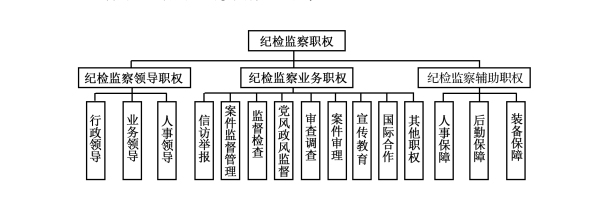 从总体上看,可以将纪检监察职权分解为纪检监察领导职权、纪检监察业务职权、纪检监察辅助职权三类一级职权,其中业务职权是核心职权,其他职权都服务于业务职权。