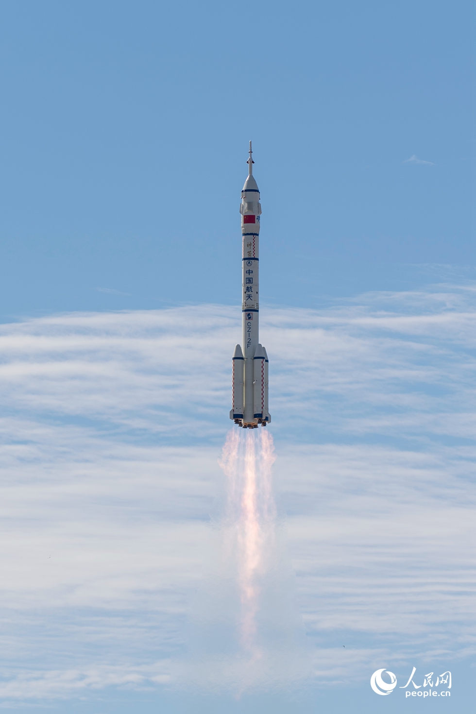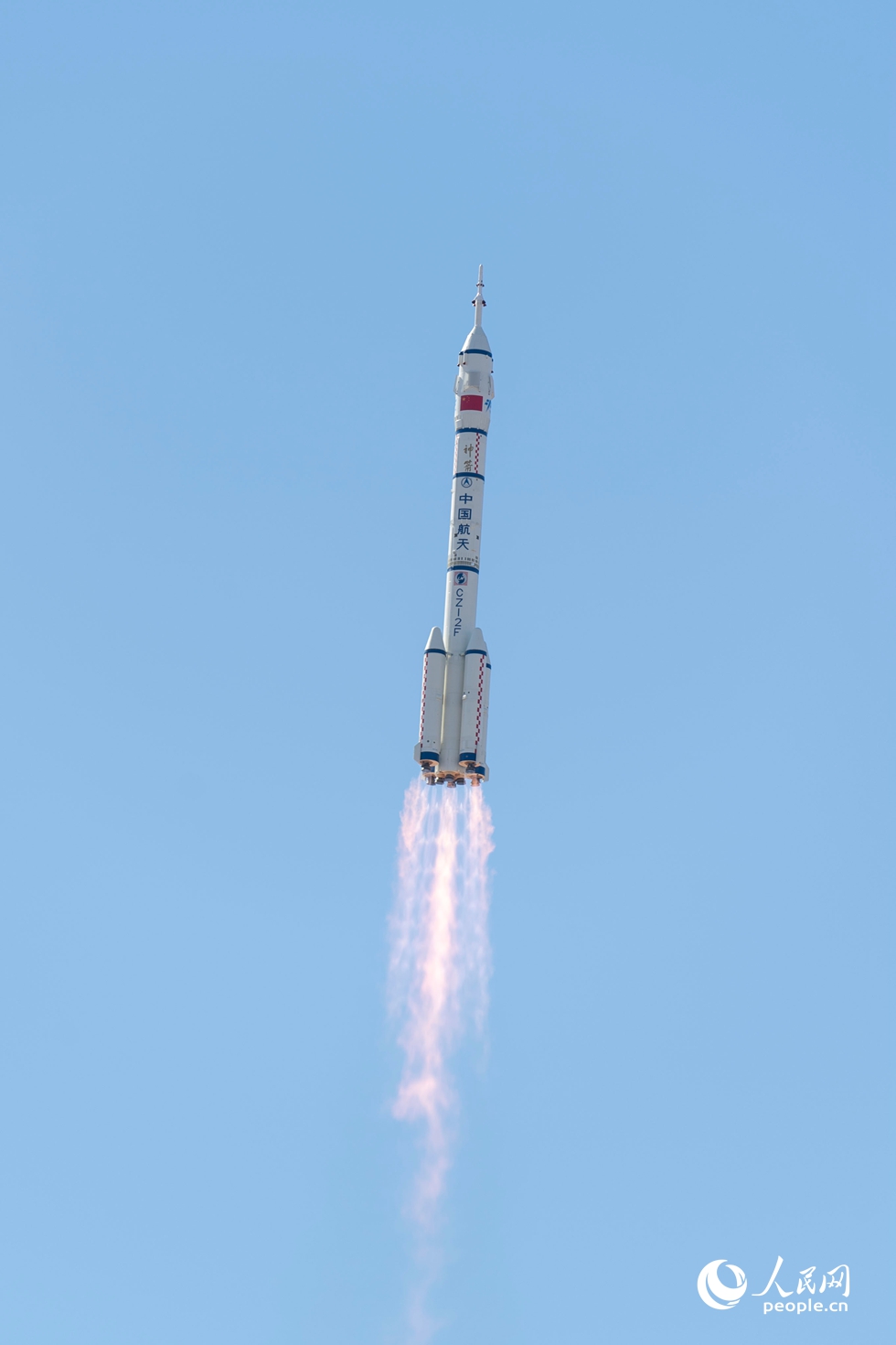 2021年6月17日9时22分,搭载神舟十二号载人飞船的长征二号F遥十二运载火箭准时点火发射。人民网记者 翁奇羽摄