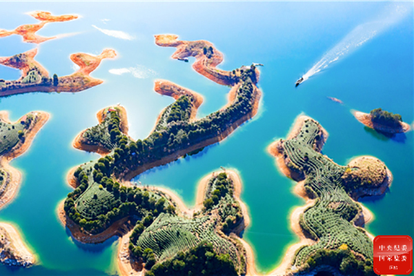 春日江南,湖水倒映着蓝天,碧绿的茶园错落有致,茶农的小船划过湖面留下道道涟漪,春光无限好。(杭州市纪委监委供 钱德星 摄)