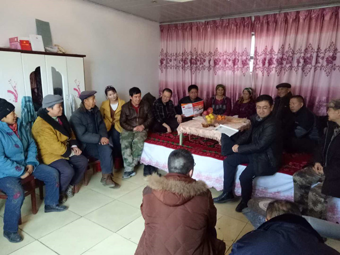 12月26日,中午吃过午饭,第三批纪检干部召集四组的亲戚和群众10余人在老党员艾合买提·肉孜家学习宣传党的十九大精神,讨论乡村振兴战略如何实施,一起谋划2018年农业生产和美丽乡村建设。四组村民闫先明说:“我们通过看电视、收听小喇叭,知道了党的十九大为我们农民又制定了新的政策,我虽然60多岁了听了这些政策心里很激动,县里的美丽乡村建设给我们提供了那么多的砖、水泥,我自己带着家里人都能干好!”