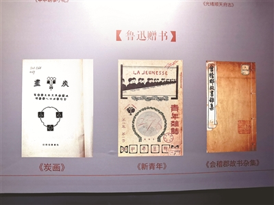 在首图的展陈中,我们可以清楚地看到鲁迅捐赠的图书,其中的《新青年》第一卷第一号格外引人注目。