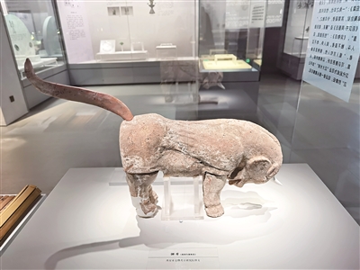 展览还展出了汉阳陵陪葬墓园等出土的农具和其他展示农事活动场景的文物,包括陶房型仓、陶猪圈、带盖陶仓等,有的陶仓外壁甚至还写有“大豆”“麻”字样,以示分类储存。汉代陵墓有“事死如事生”的传统,汉景帝不仅重视农业发展,还曾下诏要求帝后亲耕亲织,作为天下表率。随着汉初对农业发展的高度重视、生产工具的革新,户口既息,仓储丰盈,展出的舂米画像砖、桑园画像砖、农作画像砖等,再现了汉代劝民务农、耕作繁忙、物产丰饶的图景。
