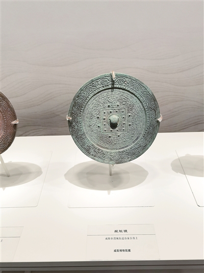 展览中展出了一组刻有规、矩图案的“规矩镜”。中国有着悠久的用镜历史,使用铜镜的起点,最早可追溯到距今四千年前的新石器时代。到了汉代,铜镜使用已较为普遍,其制作精良、形态美观、图纹华丽,承载了丰富的文化内涵。