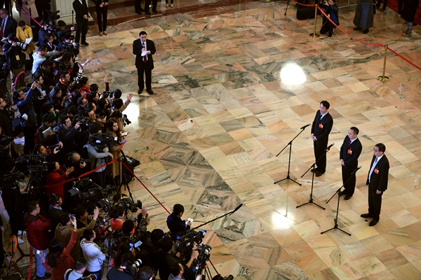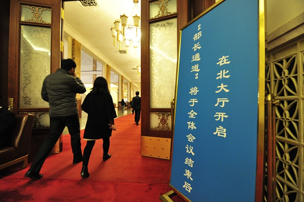 会议开始前,首场“代表通道”在人民大会堂内中央大厅开启,来自多个团组的10位全国人大代表接受媒体采访。会议结束后,人民大会堂北大厅迎来今年第二场“部长通道”,六个部委的负责人驻足回应社会关切。