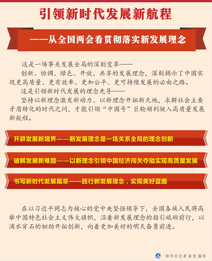 在以习近平同志为核心的党中央坚强领导下,全国各族人民将高举中国特色社会主义伟大旗帜,沿着新发展理念的指引砥砺前行,以滴水穿石的韧劲开拓创新,向着更加美好的明天奋勇前进。(参与采写:于瑶、岳德亮、马剑、孟含琪、胡璐、张紫赟、邬慧颖)