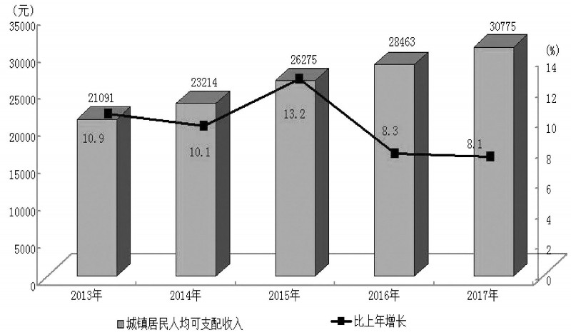 全区居民人均消费支出15087元,比上年增长7.3%,扣除价格因素,实际增长4.9%。按常住地分,城镇居民人均消费支出22797元,增长7.4%,扣除价格因素,实际增长4.9%;农村居民人均消费支出8713元,增长5.3%,扣除价格因素,实际增长3.4%。