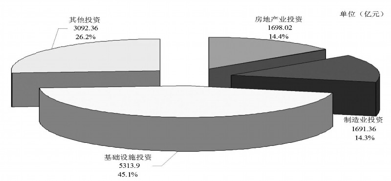 全年固定资产投资中,基础设施投资5313.90亿元,增长42.4%,占固定资产投资的比重为45.1%;民间投资3416.85亿元,增长1.3%,占固定资产投资的比重为29.0%;民生投资2493.33亿元,增长6.7%,占固定资产投资的比重为21.1%。六大高耗能行业投资1367.10亿元,下降28.0%,占固定资产投资的比重为11.6%。