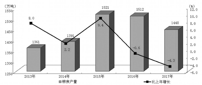 全年粮食产量1447.60万吨,比上年减产4.3%。夏粮产量651.90万吨,减产10.4%;小麦产量649.85万吨,减产10.1%。秋粮产量795.70万吨,增产1.4%;玉米产量691.54万吨,增产4.2%。全年棉花产量456.60万吨,增产8.7%。油料产量71.20万吨,减产0.3%。甜菜产量530.68万吨,减产4.4%。