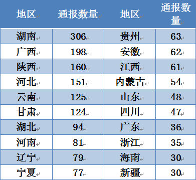 从地域来看,通报主要集中在脱贫攻坚任务较重的20个省区市(单位:起)