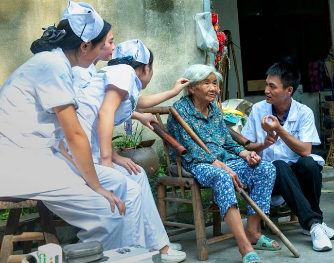 四川省彭州市家庭医生团队及党员志愿者定期下乡入户,将关爱与温暖送到群众身边。保障人民健康福利的本心,在美丽乡村鸣响健康中国“进行曲”。