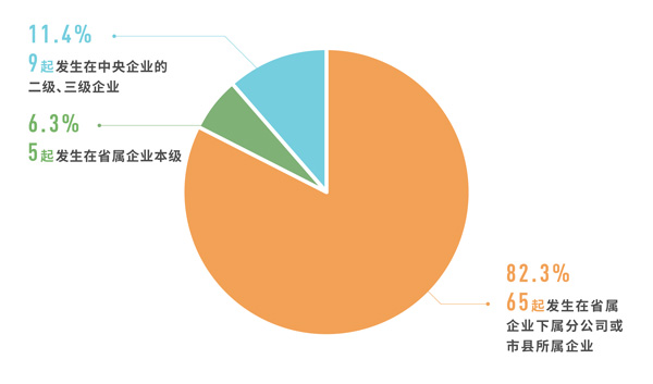数据表明,中央企业集团层面党风廉政意识明显加强,但全面从严治党压力向基层延伸还不够,尤其是二级以下企业对抓正风反腐认识上还有差距,存在“上热中温下冷”“沙滩流水不到头”的现象。通报的79起案例中,9起发生在中央企业的二级、三级企业,如招商局集团有限公司所属中外运集装箱运输有限公司阳光速航运营中心副总经理金航用公款组织公司客户到娱乐场所进行高消费娱乐活动、交通银行吉林省分行风险部总经理蔡绍军等人违规公款吃喝,5起发生在省属企业本级,如浙江省盐业集团违规公务接待、甘肃医药集团公司违规发放福利,其余65起发生在省属企业下属分公司或市县所属企业。