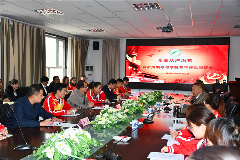 11月2日,巴音学院召开青年教师、学生党员座谈会,2名青年教师党员代表和4名学生党员代表分别就个人的工作经历、求学经历和奋斗理想作了精彩发言。