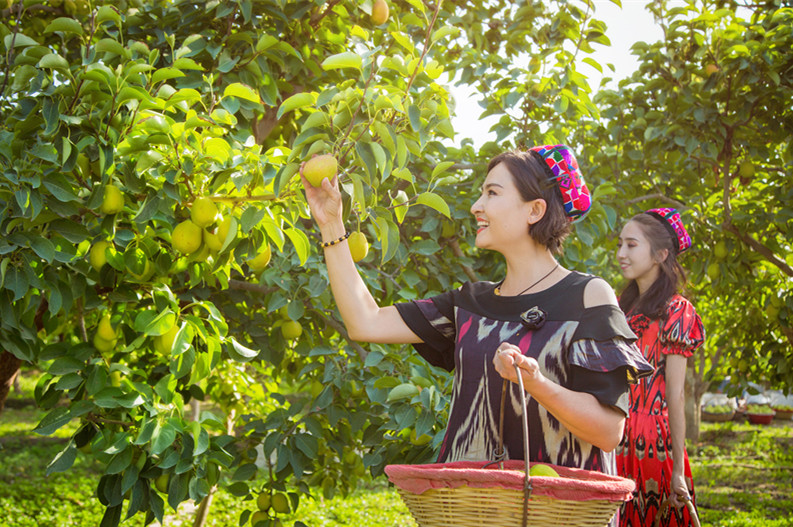 9月的新疆,瓜果飘香,硕果累累,而素有“梨城”之美誉的库尔勒,最具代表性的水果——香梨,迎来了全面采摘期,农民们享受着丰收的喜悦,梨园一派收获繁忙景象。