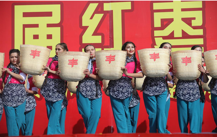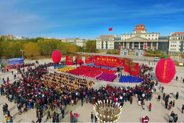 美丽的舞者们用优雅的舞姿诠释着丰收的喜悦,也为辛苦耕耘的枣农们带来难得的轻松和愉悦。