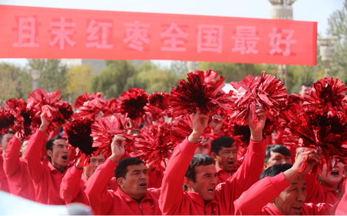 喜气的红枣节里,人们欢庆在一起。