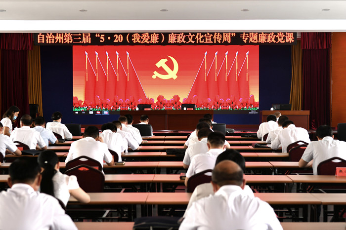 21日下午,自治州第三届“5·20(我爱廉)廉政文化宣传周”专题廉政党课活动在州纪委监委举行,进一步压实党委(党组)党风廉政建设主体责任,深化标本兼治推动以案促改,一以贯之、坚定不移推动全面从严治党向纵深发展、向基层延伸,为决胜全面建成小康社会、决战脱贫攻坚提供坚强保证。