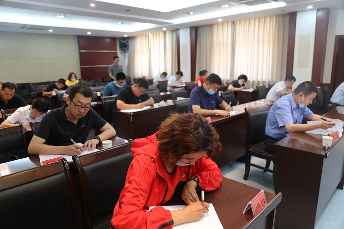 集中廉政谈话后,县纪委监委对18名拟提任干部进行了廉政考试。廉政考试范围主要以习近平新时代中国特色社会主义思想、党的十九大报告,以及《党章》《宪法》《监察法》《中国共产党廉洁自律准则》《中国共产党纪律处分条例》《中国共产党问责条例》等应知应会知识为主要内容。考试以书面闭卷形式进行,题型为单选题、多选题、判断题、论述题四种类型。