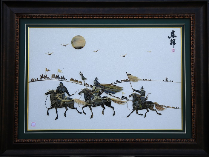 骨雕作品《迁徙》是艺术与历史文化的结合,骨雕技艺与美好的历史寓意结合,栩栩如生,展现了东归壮举,体现了爱国主义精神。