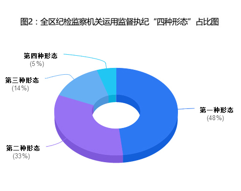 运用监督执纪“四种形态”处理43137人次。其中,第一种形态处理20814人次,占“四种形态”处理总人数的48%;第二种形态处理14247人次,占33%;第三种形态处理5924人次,占14%;第四种形态处理2152人次,占5%。