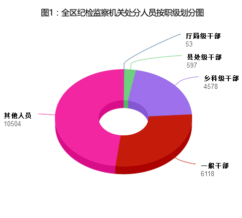 新疆维吾尔自治区纪委坚持无禁区、全覆盖、零容忍,聚焦维护新疆社会稳定和长治久安总目标,深入推进党风廉政建设和反腐败斗争。今年1至10月,全区各级纪检监察机关立案审查24379件,自治区本级立案审查81件;处分21850人,其中,厅局级干部53人,县处级干部597人,乡科级干部4578人,一般干部6118人,其他人员10504人。